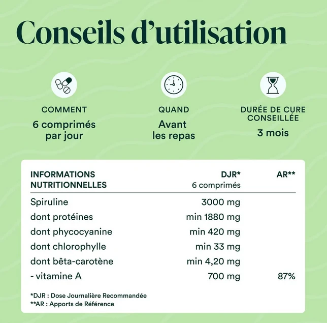 – 100% Spiruline pure – Sans additifs ni conservateurs